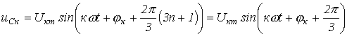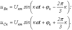 , для к-х гармонических напряжений фаз В и С соответственно можно записать: