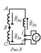 1. Если фазы генератора соединены в треугольник, то при несинусоидальных фазных ЭДС сумма ЭДС, действующих в контуре (см. рис. 7) не равна нулю, а определяется гармониками, кратными трем. Эти гармоники вызывают в замкнутом треугольнике генератора ток, даже когда его внешняя цепь разомкнута: