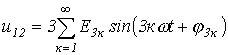 где 2. Если фазы генератора соединить в открытый треугольник (см. рис. 8), то на зажимах 1-2 будет иметь место напряжение, определяемое суммой ЭДС гармоник, кратных трем: