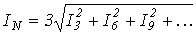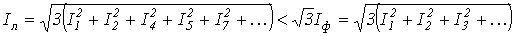 4. При симметричной нагрузке ток в нейтральном проводе определяется гармоническими, кратными трем, поскольку они образуют нулевую последовательность: