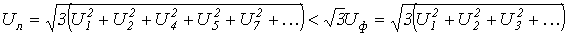 - гармоники данной группы образуют симметричные системы напряжений, последовательность которых соответствует последовательности фаз первой гармоники, т.е. они образуют симметричные системы напряжений прямой последовательности.