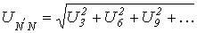 5. При соединении в звезду и отсутствии нейтрального провода фазные токи нагрузки не содержат гармоник, кратных трем (в соответствии с первым законом Кирхгофа сумма токов равна нулю, что невозможно при наличии этих гармоник). Соответственно нет этих гармоник и в фазных напряжениях нагрузки, связанных с токами законом Ома. Таким образом, при наличии гармоник, кратных трем, в фазных напряжениях генератора напряжение смещения нейтрали в симметричном режиме определяется этими гармониками