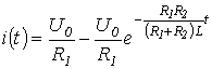 В качестве примера использования формулы включения рассчитаем ток в цепи на рис. 2, если в момент времени t=0 она подсоединяется к источнику с напряжением