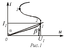 Статическое сопротивлениеравно отношению напряжения на резистивном элементе к протекающему через него току. В частности для точки 1 ВАХ на рис. 1