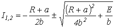 Необходимо помнить, что при получении нескольких корней нелинейного уравнения они должны быть проверены на удовлетворение задаче. Пусть, например, в цепи, состоящей из последовательно соединенных линейного R и нелинейного резисторов, ВАХ последнего может быть аппроксимирована выражением . Определить ток в цепи, если источник ЭДС Е обеспечивает режим работы цепи в первом квадранте.
