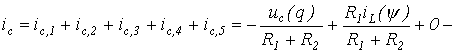 На основании метода наложения с использованием расчетных схем на рис. 3 для второй искомой переменной – тока