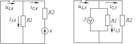 На третьем этапе с использованием метода наложения определяются выражения входных токов и напряжений пассивного многополюсника П через напряжения и токи всех присоединенных к нему источников. В качестве примера составим уравнения состояния для цепи на рис. 2,а и определим выражения
