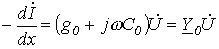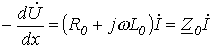 - соответственно комплексные сопротивление и проводимость на единицу длины линии.