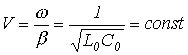 Линия, параметры которой удовлетворяют условию (4), называется линией без искажений. Фазовая скорость для такой линии