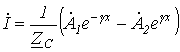 где в соответствии с (5) Представление напряжения в виде суммы прямой и обратной волн согласно (10) означает, что положительные направления напряжения для обеих волн выбраны одинаково: от верхнего провод Аналогично для тока на основании (6) можно записать