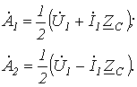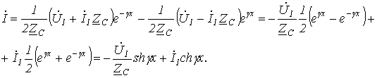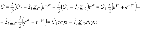 в (9) и (10) получаем уравнения, позволяющие определить ток и напряжение по их значениям в конце линии