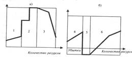 • скачкообразно (существенно больше привлечения дополнительных ресурсов) (рис.1б).