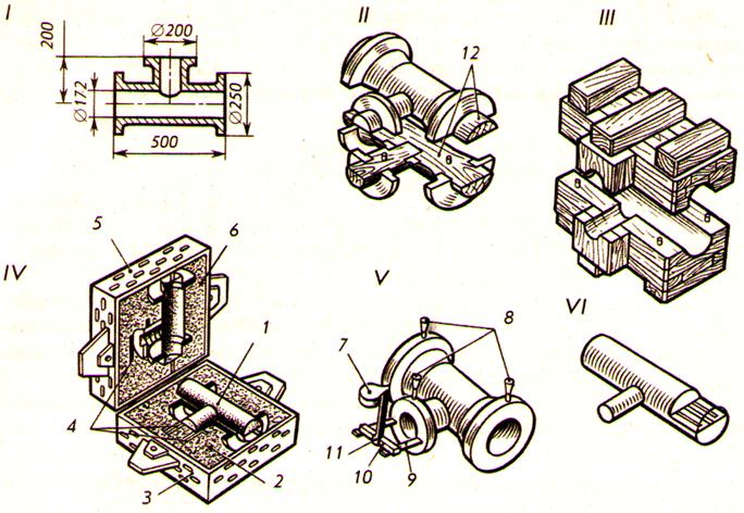 I Литьё в разовые формы, изготовленные из формовочной смеси, которая состоит из кварцевого песка, глины, молотого кокса и формовочной земли. Возможна формовка всырую и всухую.