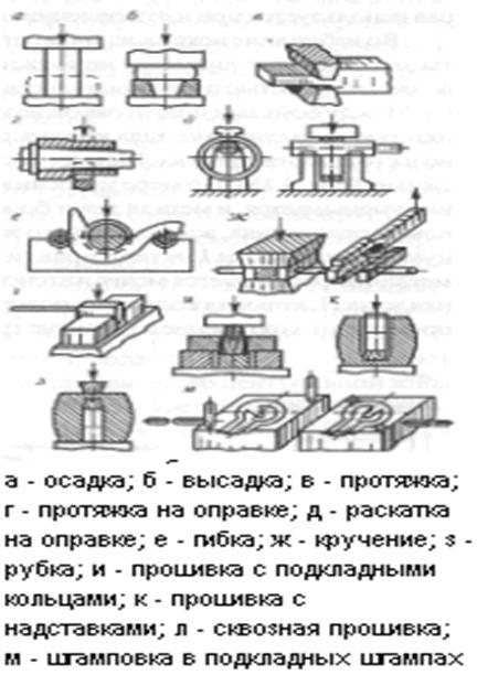 2) Штамповка – деформация ограниченная конфигурацией штампа. Различают штамповку горячую и холодную, объёмную и листовую.