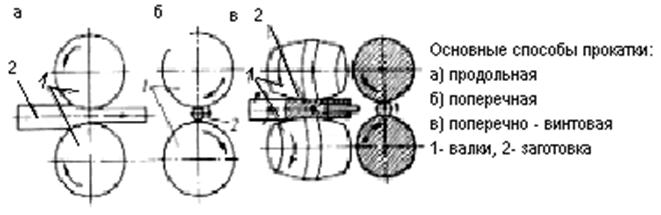 3) Прокатка – обработка путём обжатия заготовки между вращающимися валками.