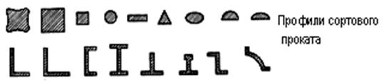 д) стандартные прокатные профили – двутавры, уголки, рельс, швеллер и др.;