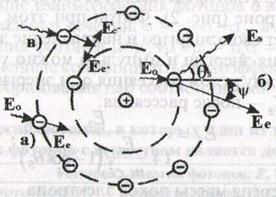 Рис.2. Схемы фотоэффекта (а); комптоновского рассеяния (б) и образования электрон-позитронных пар (в) (Машкович, 1990)