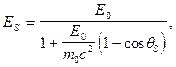 Комптон-эффект представляет собой рассеяние фотона на свободном электроне (рис.2.). Фотон при этом не поглощается, а лишь изменяет свою энергию и направление движения. Из законов сохранения энергии и импульса можно установить следующую связь между углом рассеяния qS и энергией фотона Е0 - до рассеяния и ЕS - после рассеяния: