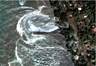 Бурлящие воды бьются о берег — всего лишь за несколько мгновений до удара основной водяной стены.