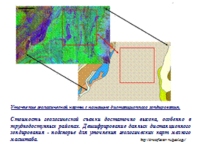 · использовать космические снимки можно в качестве простейшей карты, или, точнее, основы, на которую можно наносить различные данные;