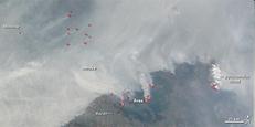 Из космоса, впрочем, видно не всё. Эксперты NASA отмечают, что большое количество очагов пожаров спутник не может обнаружить, поскольку они скрыты плотной пеленой дыма. Спутники, однако, способны получать информацию не только в видимом диапазоне, но и более широком спектре, определяя распространение других продуктов горения. На космическом снимке лесных пожаров, полученном другим спутником EOS, Aqua, заметно, как распространяется в атмосфере угарный газ (на снимке — области, окрашенные красным цветом): особенно велика его концентрация к востоку и юго-востоку от Москвы, а также на Предуралье и Западной Сибири.
