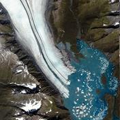 Красивое и явное свидетельство того, что ледники медленно тают из-за глобального потепления. Легко различимы края ледниковых долин, превращающиеся в воду, и формирующие озера — тенденция, замеченная лишь в течение нескольких последних десятилетий.