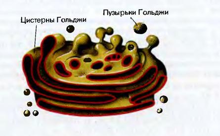 В диктиосомах АГ образуются гликопротеины и гликолипиды и осуществляется накопление и мембранная «упаковка» соединений, необходимых для синтеза полимеров клеточной стенки и различных растительных слизей. С помощью везикул Гольджи углеводные компоненты доставляются к плазмалемме. Мембрана пузырьков встраивается в плазмалемму, способствуя ее росту и обновлению. Секретируемые вещества оказываются в клеточной стенке. Мембраны АГ являются связующим звеном между мембранами ЭР и плазмалеммой.