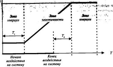 Принцип инерции (или запаздывания) состоит в том, что изменение потенциала системы Rj начинается спустя некоторое время (7з) после начала воздействий изменений во внешней или внутренней среде и продолжается некоторое время (7п) после их окончания (рис. 3.13).