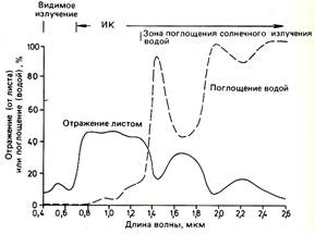 Спектральные характеристики растений определяются в основном способностью их листвы отражать, поглощать и пропускать солнечную энергию.
