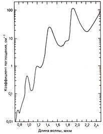 Рис. 52. Соотношение спектров поглощения чистых вод в инфракрасном диапазоне. (С разрешения издателя из [135].)