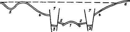 В пределах геосинклиналей обычно выделяют семь структурно-металлогенических элементов: срединные массивы, внутренние зоны, геосинклинальные рвы, периферические зоны, передовые прогибы, платформенные рамы и пограничные глубинные разломы (рис. 4).
