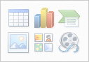 В данном окне название определяет назначение каждого из макетов. Прототипы с цветными значками (таких здесь шесть) могут содержать текст, но в них также можно щелкнуть эти значки, чтобы автоматически вставить изображенные такими значками объекты (таблицу, диаграмму, рисунок SmartArt, рисунок из файла, картинку или файл видео) - рис. 2.7.