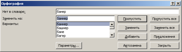 Рис. 3.10. Найдена ошибка в слове "баннер"