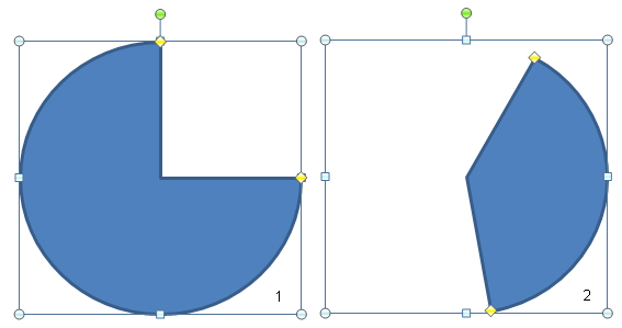Следует знать, что: Желтый маркер на фигуре (они есть не всегда) позволяет менять форму фигуры (рис. 4.14). Белые маркеры на фигуре позволяют менять ее размеры. Зеленый маркер служит для вращения фигуры