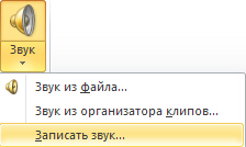 В меню Вставка в группе Мультимедиа выберите команду Звук, а затем - Записать звук (рис. 5.8).