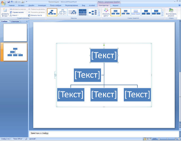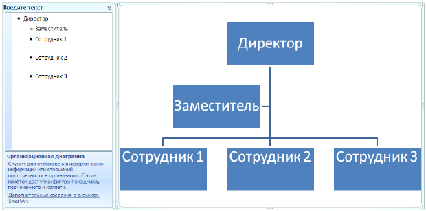 Организационная диаграмма используется для графического представления управленческой структуры организации, например, управляющих отделами или рядовых сотрудников компании. При помощи рисунков SmartArt в приложении Microsoft Office PowerPoint 2010 можно создавать организационные диаграммы и включать их в рабочие листы, презентации или документы.