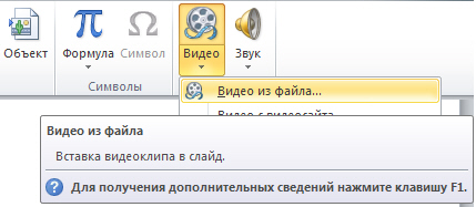 Рис. 7.1. Вставка фильма в слайд