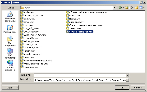 Рис. 7.2. Окно для выбора видеофайла для вставки в слайд