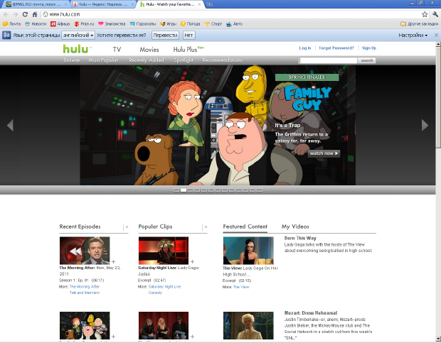 Рис. 7.5. Главное окно сайта hulu.com