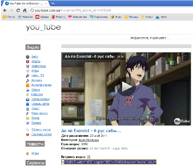 Пример 7.1. Вставка ссылки на видеофайл с веб-сайта