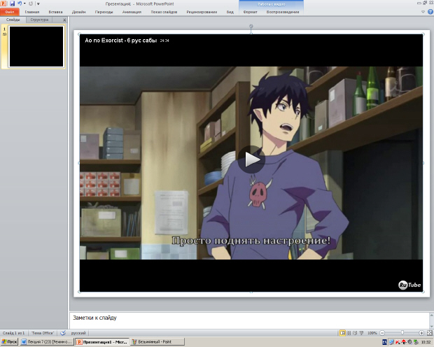 Рис. 7.8. Видео из сайта вставлено в PowerPoint 2010