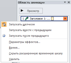 · Запускать после предыдущего (значок часов). Эффект анимации начинается сразу после окончания предыдущего эффекта из списка (при этом не требуется дополнительного щелчка, чтобы начать следующий эффект анимации).