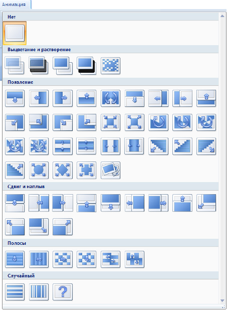 Рис. 7.18. Типы переходов между слайдами