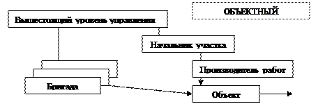 В составе СМУ организуются участки старшего производителя работ – строительные участки. В непосредственном подчинении начальника строительного участка находятся производители работ, осуществляющие руководство бригадами непосредственно или через мастеров. Варианты подчинения бригад рабочих показаны на рисунке 19. На строительном участке имеется небольшой производственно-управленческий аппарат, включающий инженера, нормировщика-табельщика, механика, бухгалтера, кладовщика, геодезиста. Этот аппарат непостоянен, например, бухгалтер включается при значительном удалении участка от СМУ, постоянная потребность в геодезисте возникает при производстве работ по благоустройству территории, при строительстве дорог, табельщик необходим при большом количестве рабочих на участке.