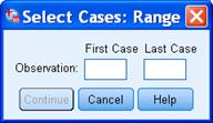 При анализе данных редко, но встречается ситуация, когда не все анкеты равноправны. Такая ситуация называется Time series – временным рядом. При этом может потребоваться включить в анализ только респондентов с определенными порядковыми номерами. Тогда можно в процедуре отбора наблюдений выбрать пункт «Временной диапазон или диапазон наблюдений» (Based on time or case range) и указать точно, с какой анкеты по какую будем анализировать:
