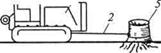 Расчистка территории и снос строений. В соответствии с проектом подготовительных работ часть зеленых насаждений на строительной площадке защищают от повреждений и пересаживают на новые места. Деревья и кустарники, не подлежащие вырубке и пересадке, огораживают, а остальные спиливают механическими или электрическими пилами, толстые корни пней подрезают рыхлителями или бульдозерами, после чего пни корчуют с помощью факторных лебедок, иногда с помощью полиспастов (рис. 5.7).