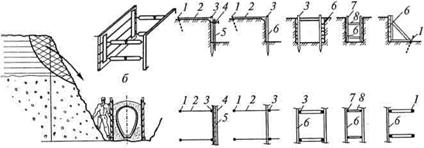В таких условиях необходимо, наряду с ограничением притока поды, укреплять боковые стенки земляных сооружений креплениями (рис. 5.9).
