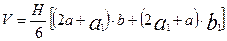 где Н — глубина котлована; a, b — длины сторон котлована у основания; а1, b1 — длины сторон котлована поверху (а1 = а + 2Н т; b1 = b + 2Н т); т — коэффициент откоса (нормативное значение по табл. 5.4).