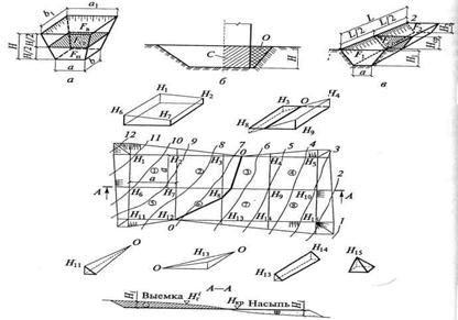 Рис. 5.10. Схемы определения объемов земляных работ: