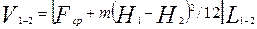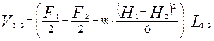 где F1, F2— площади поперечного сечения в соответствующих пунктах продольного профиля; Fcp — площадь поперечного сечения на середине расстояния между пунктами 1 и 2.